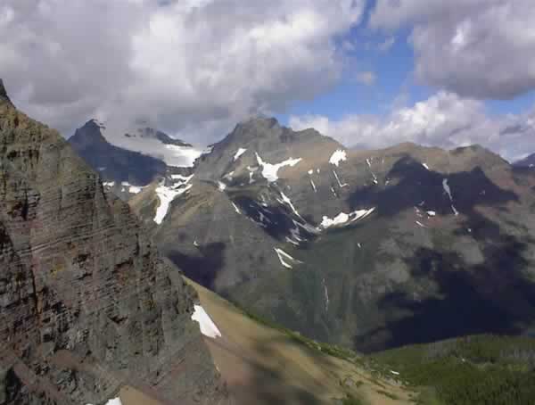 A glacier high in the Rockies. The research is saying that Glaciers such as this may only have 30 years left before they recede totally. Global climate change may shorten that time period.